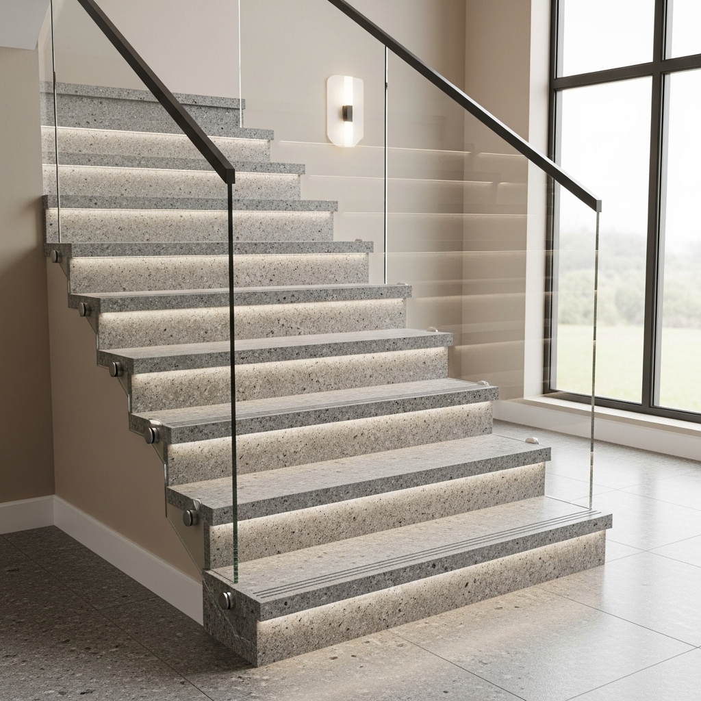 A common performance standard for granite stair treads is selecting thickness around 20–30 mm and specifying durable edge finishing (eased or chamfered) to reduce chipping at the step nose under heavy traffic.