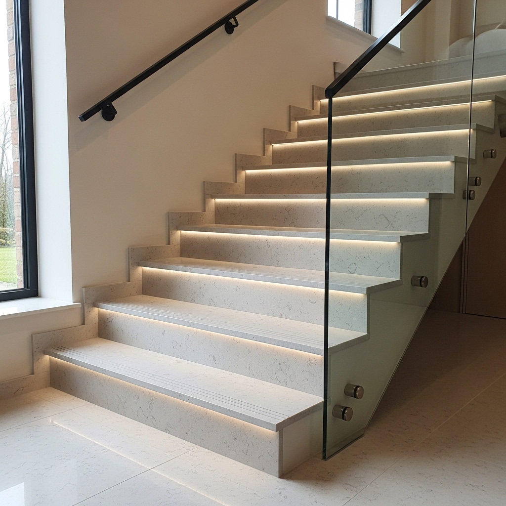Selecting the right option also depends on the desired edge profile and whether skirting and stringer cladding will be fabricated from the same granite for a unified finish.