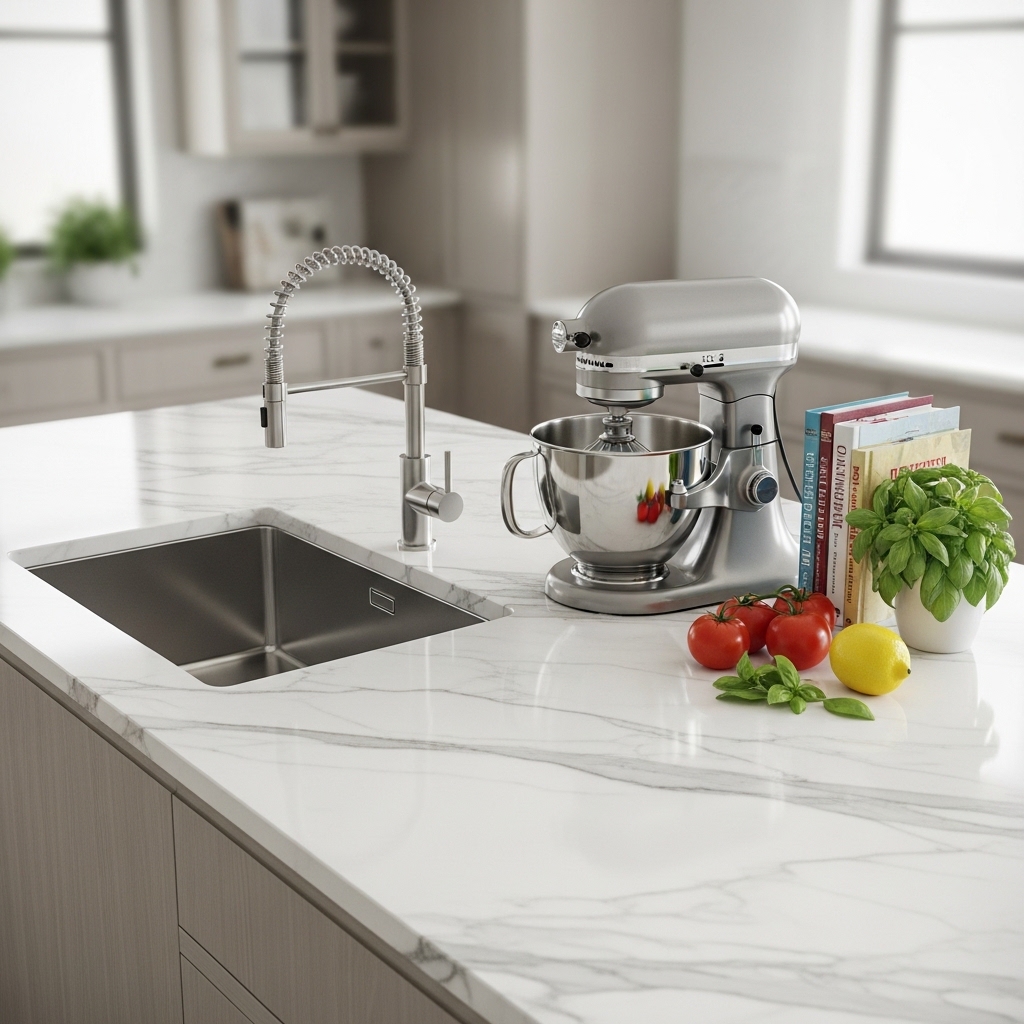 Quartz countertop slab dimensions can be ideal for decorative walls when you want the same premium surface look across countertops, backsplashes, and statement panels in one coordinated design.