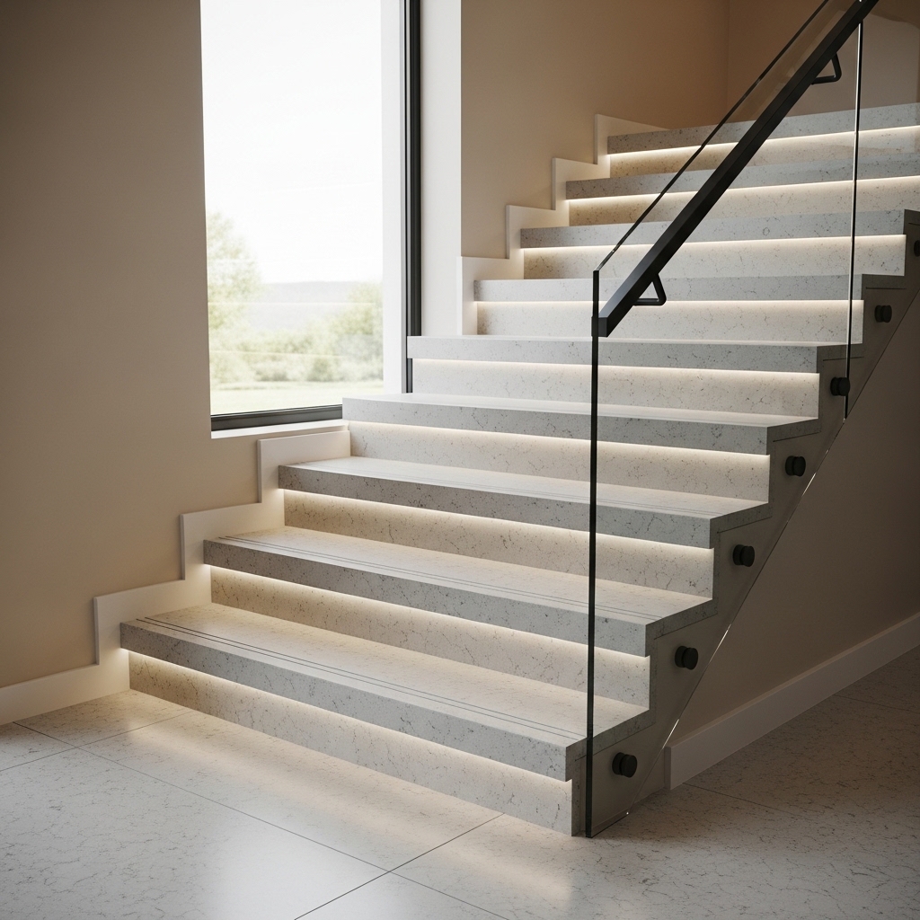 Quartz jumbo slab formats for stairs are chosen when you want larger continuous tread runs, fewer joins on wide landings, and better pattern continuity across highly visible step surfaces.