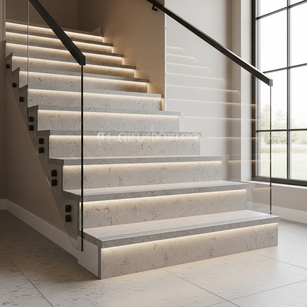 Treads commonly use robust thickness (often 20–30 mm depending on stone and design), and edge detailing is chosen to protect the step nose in high-traffic use.